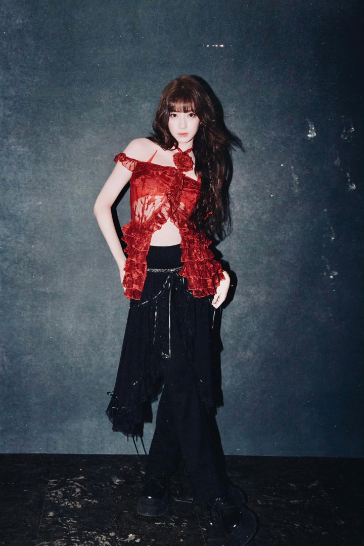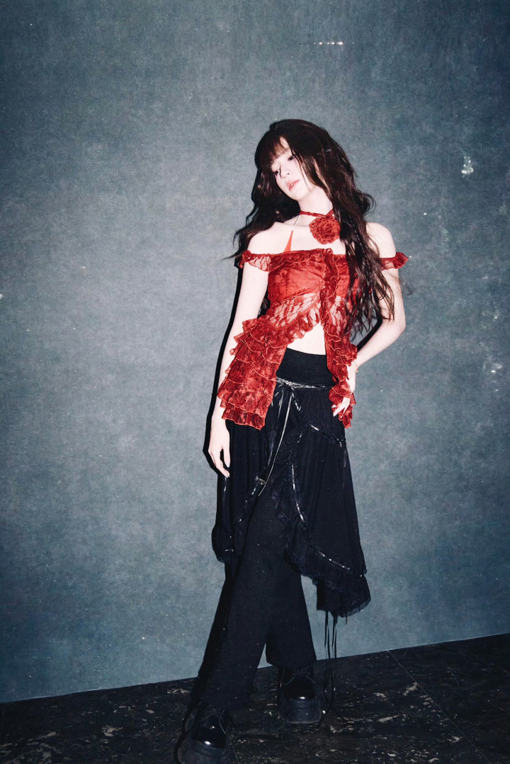 中华金配 欧阳娣娣红蕾丝挂颈抹胸